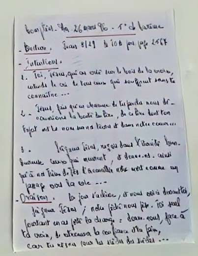 Voici la dernère fiche préparée par Frère Célestin en ce 26 mars 1996 :
