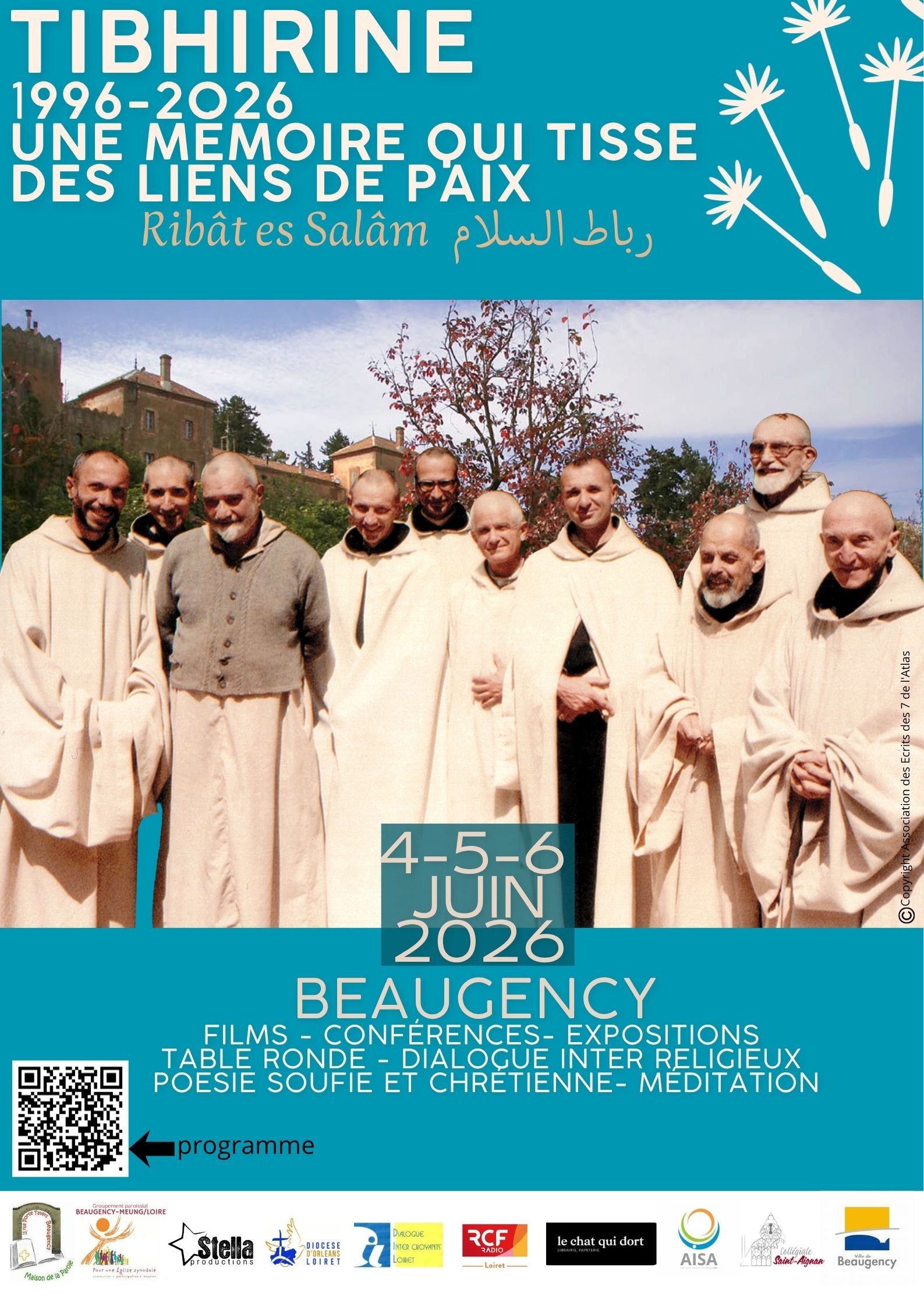 • 4 - 5 - 6 juin 2026 - Beaugency (45) - TIBHIRINE 1996-2026, Une mémoire qui tisse des liens de PAIX - Films, conférences, expositions, table ronde, dialogue inter-religieux , poésie soufie et chrétienne, méditation  - PROGRAMME -