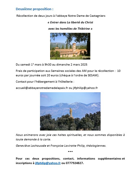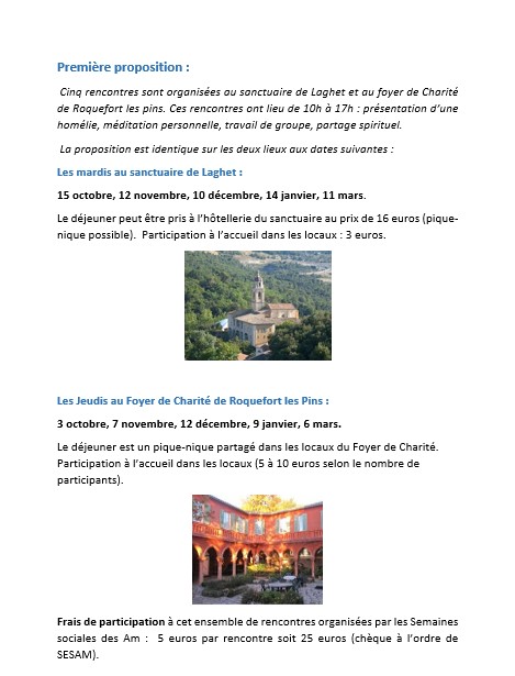 ND de LAGHET/ Foyer de Charité ROQUEFORT les PINS (06) - Haltes spirituelles autour des Homélies des moines de Tibhirine |